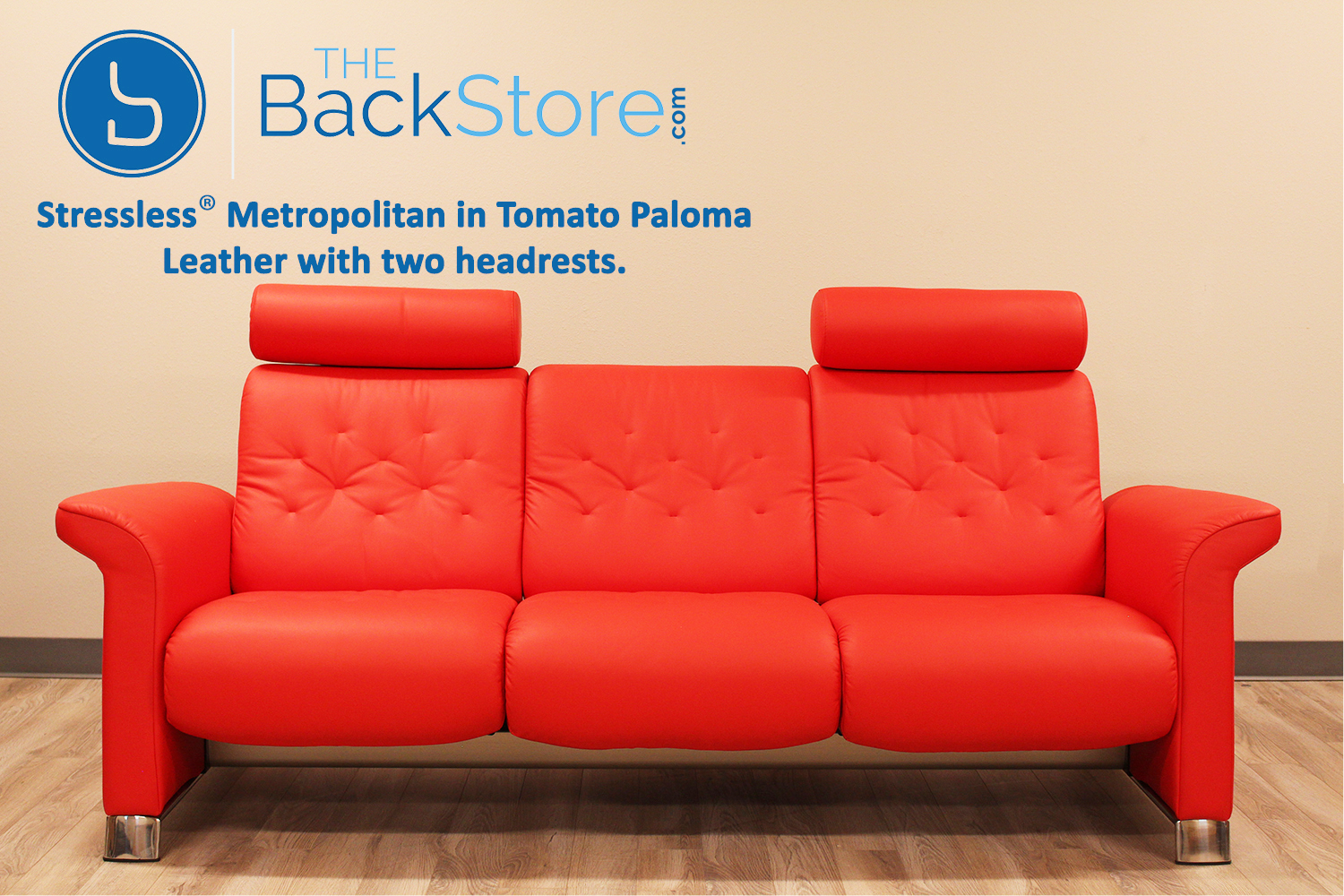 Home > Products > Ergonomic Products > Stressless by Ekornes > Leather Colors > Stressless Metropolitan 3 Seat Sofa in Paloma Tomato