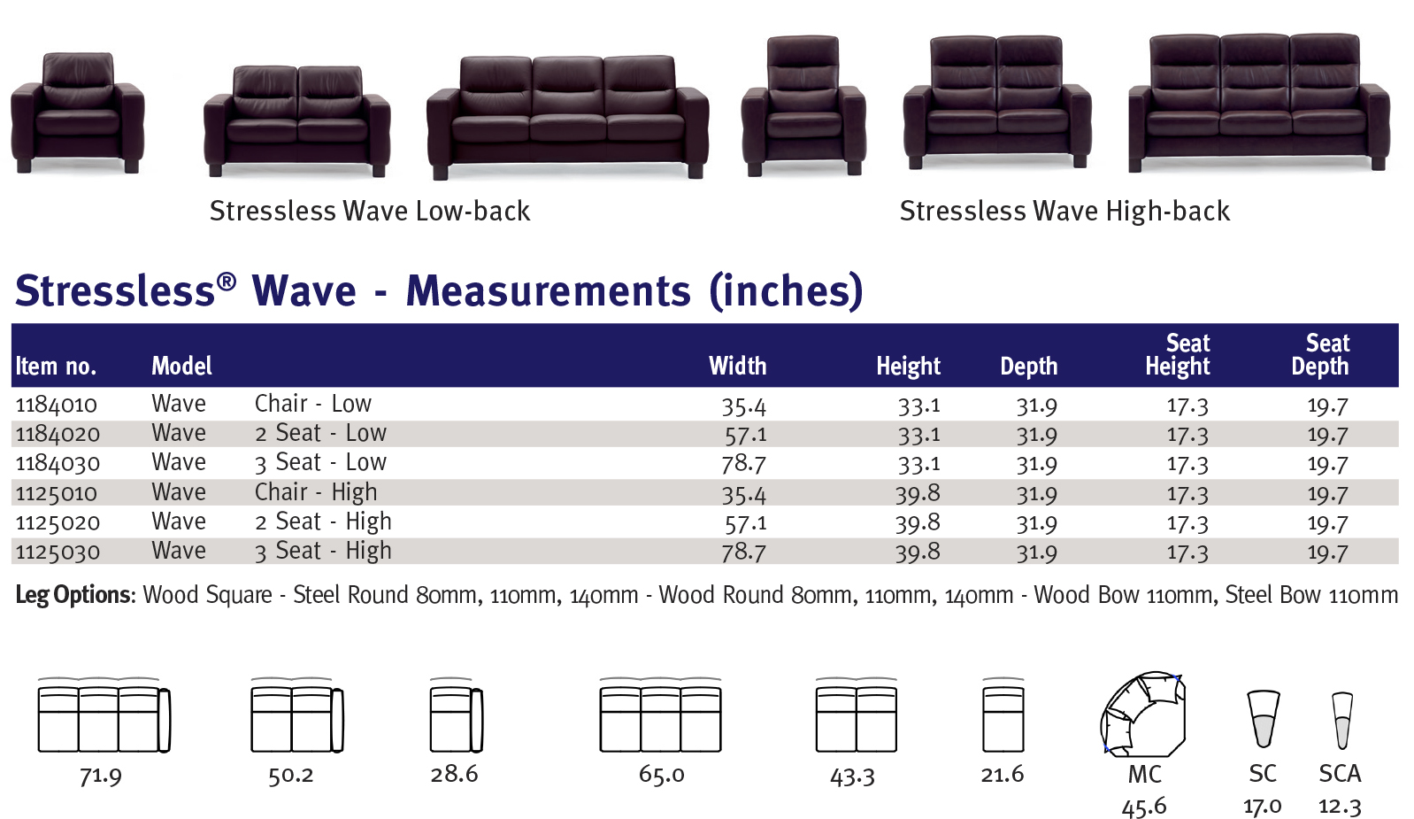 Stressless Wave Loveseat Sofa in Paloma Sand Leather Measurements