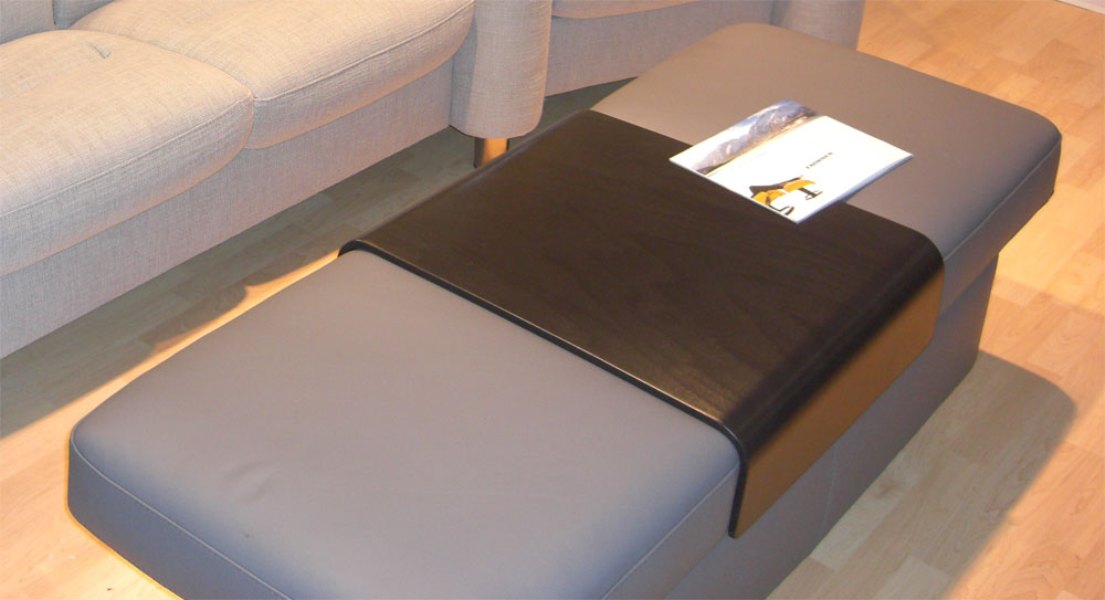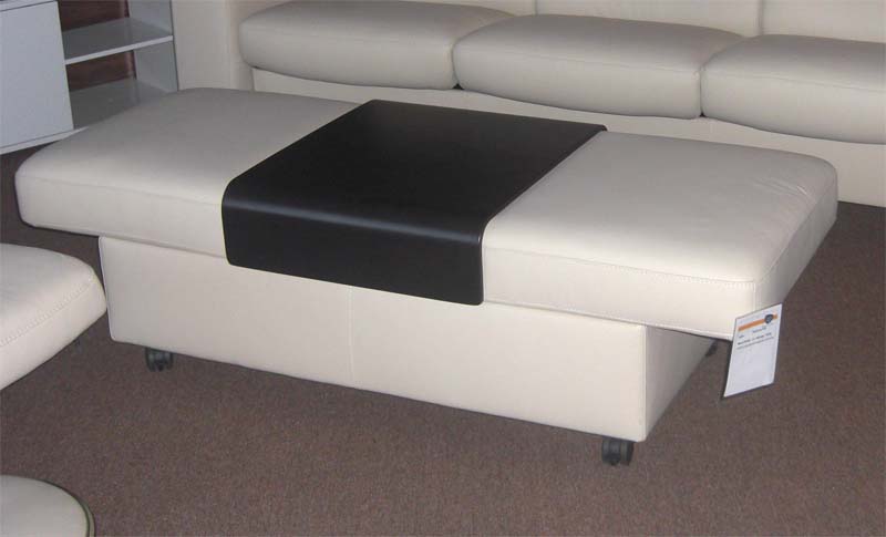 Stressless Double Ottoman in the Paloma Kitt Leather and Wenge Wood Table Top