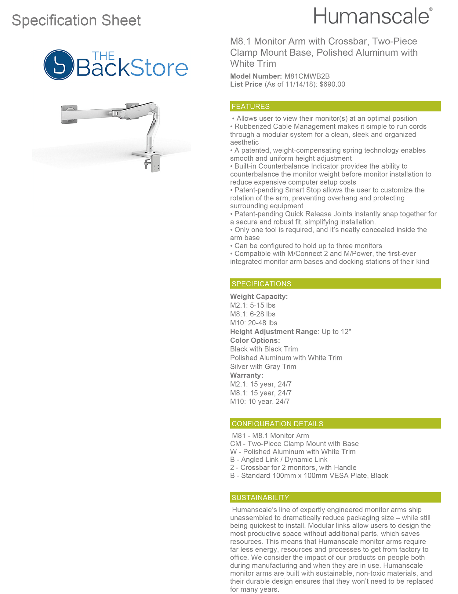 About Humanscale M8 Dual Monitor Arm with Crossbar: