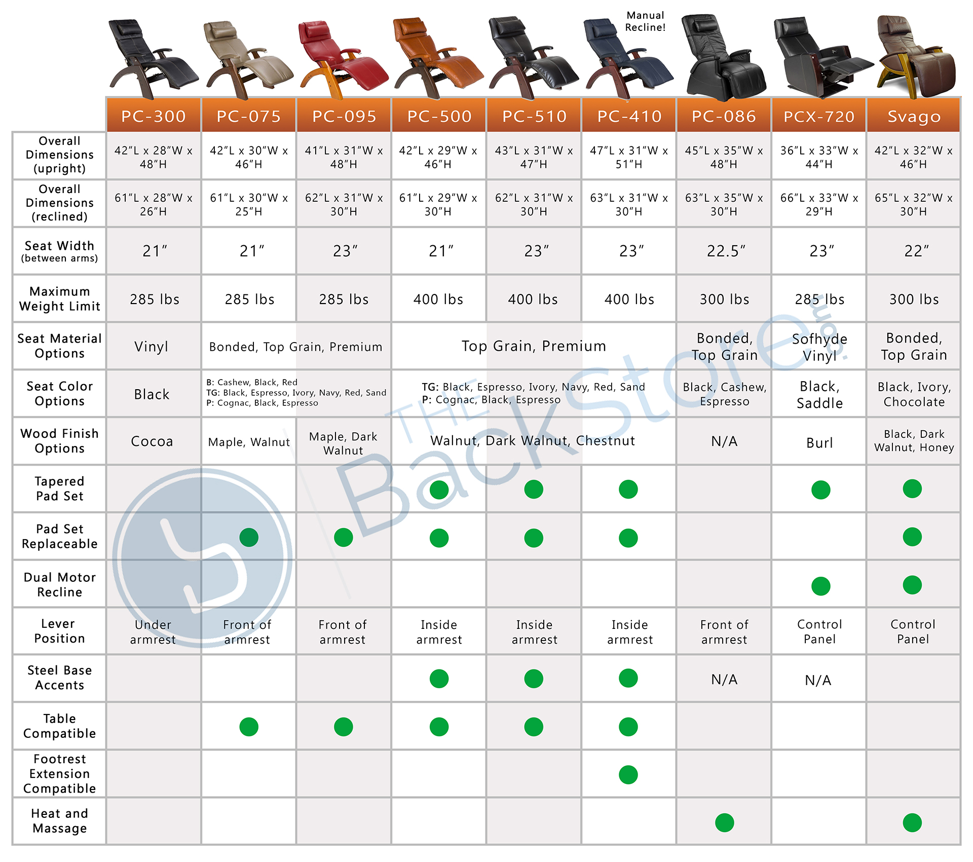 Zero Gravity Perfect Chair Recliner Comparison Chart