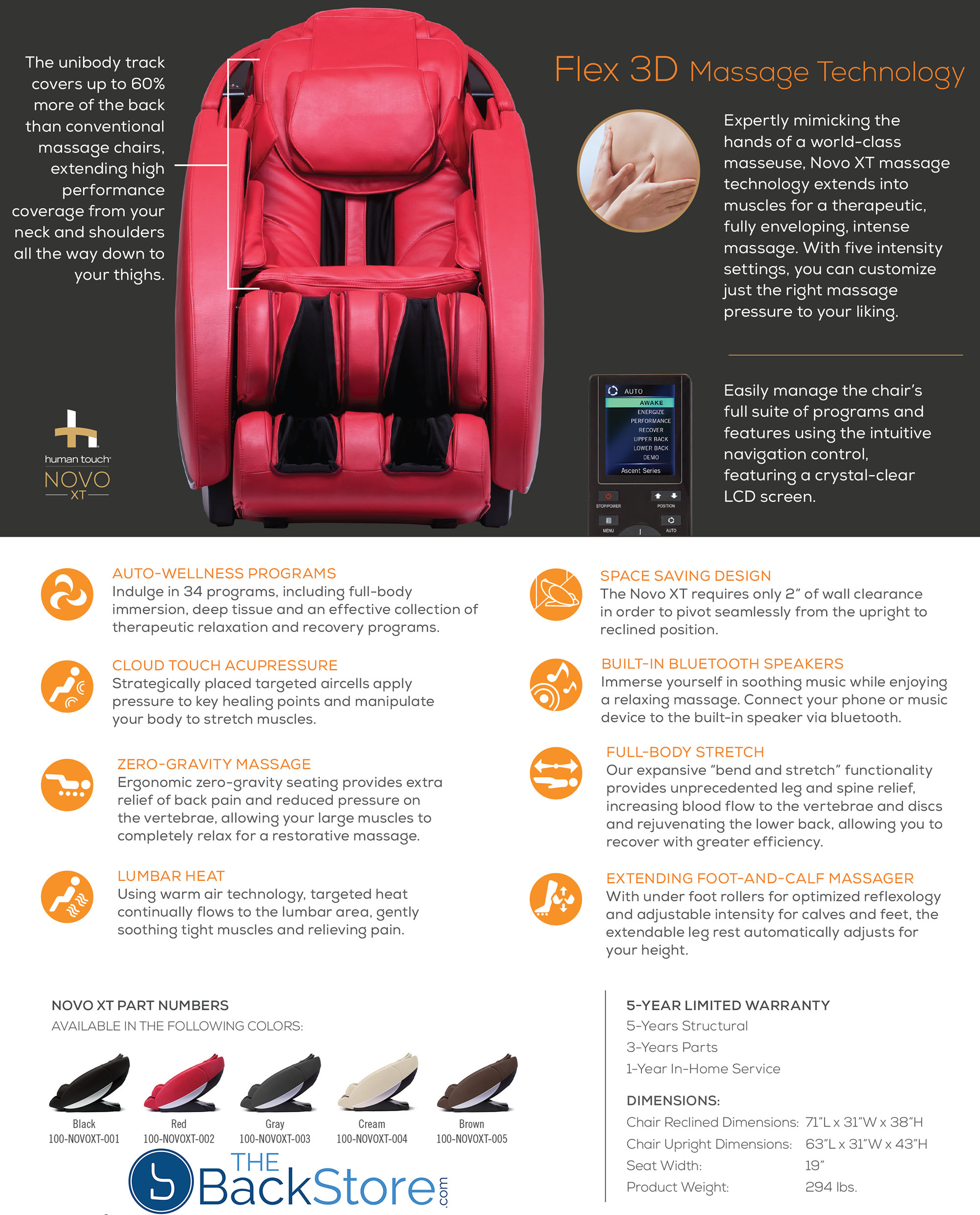 • New Novo XT and Novo XT2 Zero Gravity Massage Chairs have a 5 Year Warranty